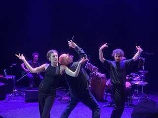 Nos yeux sont aussi rivés sur les deux jeunes danseurs, Léo Paul Martinello et Suzon Theis qui ondulent entre danses urbaines et contemporaines. Le duo livre une prestation où corps et âmes se livrent sur un fil tendu, transformant cette scène en une passerelle magique, où la chanson se marie aux mouvements entremêlés d'une grâce infinie. Entre musiciens et danseurs, Lionel Damei a tissé un lien invisible qui unit. En artiste passionné il révèle ici toute l'étendue de son talent, entre théâtre et chanson, humour et gravité, pour livrer un spectacle riche et nuancé.