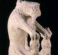 La Tarasque de Noves, superbe unicum représentant un monstre anthropophage hybride et ithyphallique, campe solidement sa puissance avec ses membres inférieurs appuyés avec force par ses griffes sur deux têtes humaines masculines barbues aux yeux clos. Elle dévore un bras et ce faisant exhibe entre ses membres postérieures, un phallus en pleine érection. Le dos du monstre est magnifiquement travaillé et de part et d’autre de l’épine dorsale les reliefs des côtes, accentuent l’évocation de l’extrême puissance de la complexion du monstre. Des restes de polychromie sont visibles sur la tarasque comme du reste sur la plupart des statues qui à l’origine étaient intégralement peintes.